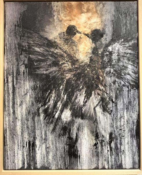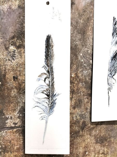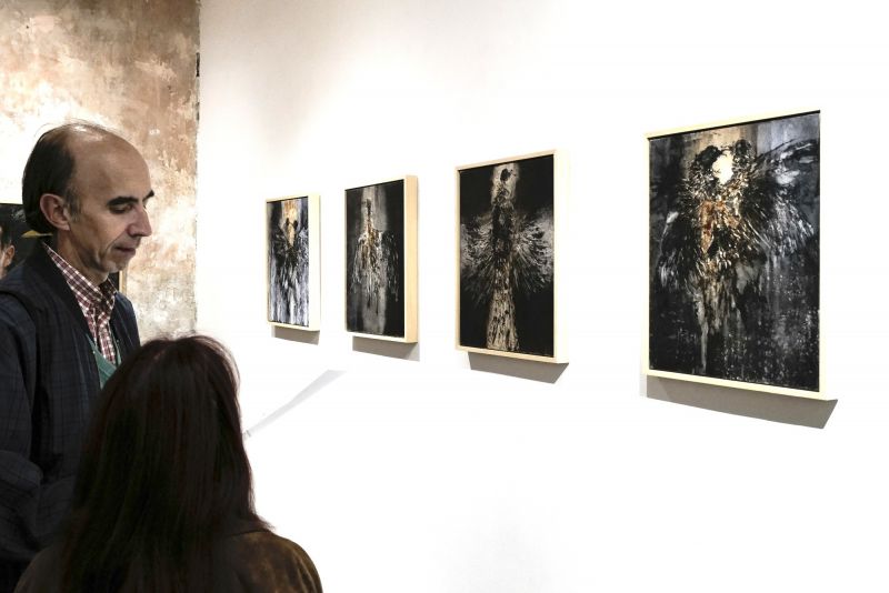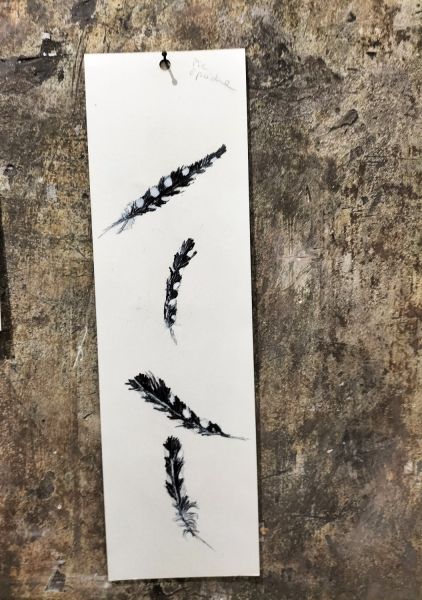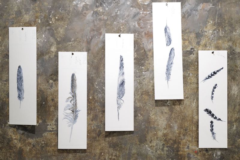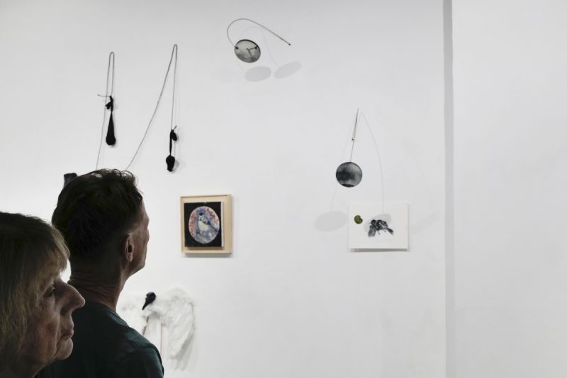 Techniques mixtes (dessins, aquarelles, huile sur toile, pastels). Modelage (étain, cire, plâtre). Matériaux divers (plumes, fer, oiseau empaillé, coton, corde)